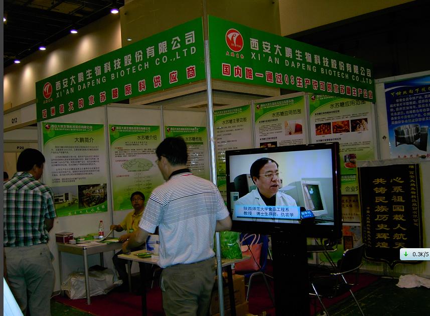 參加中韓貿(mào)洽會 走向國際大市場 參加青島食品配料展 尋求發(fā)展新商機(jī) 水蘇糖,我要認(rèn)識你! 大鵬生物參加2012中國國際輕工消費(fèi)品展覽會 恭賀大鵬生物榮獲中國輕工展覽科技創(chuàng)新獎(jiǎng) 大鵬生物參加第五屆中國國際飲料工業(yè)科技展 第四屆中國營養(yǎng)產(chǎn)業(yè)高層論壇開幕 大鵬公司董事長與公眾營養(yǎng)健康中心主任于小冬在水蘇糖聯(lián)誼會上 高鵬董事長在第四屆中國營養(yǎng)產(chǎn)業(yè)高層論壇上 公眾營養(yǎng)改善OLIGO項(xiàng)目啟動儀式